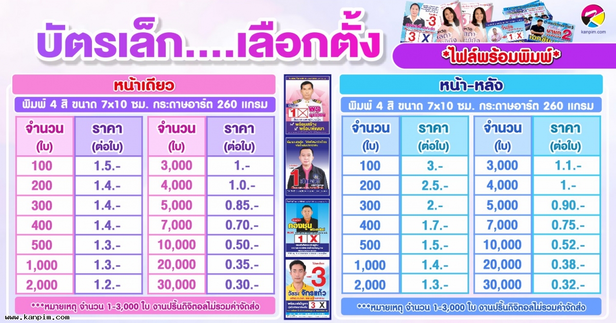 บัตรแนะนำตัว 7 x 10 สั่งแค่ 500 ใบ ใบละบาทเดียวเท่านั้น